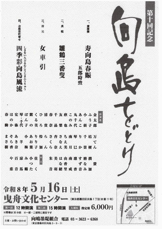 令和8年5月16日㈯ 第10回記念 向嶋をどり が開催予定です。